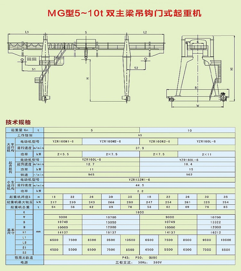 MG型5-10t雙主梁門式起重機